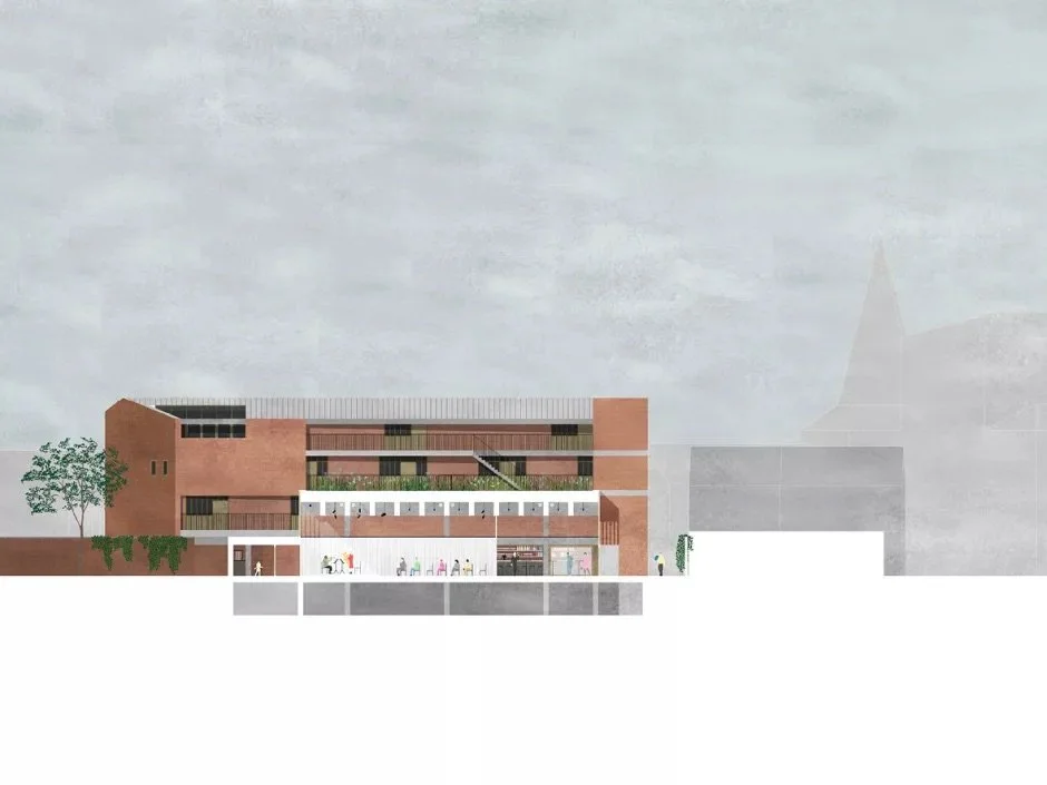 Op een plek in het hart van de dorpskern van Zonhoven wordt een ambitieuze vervanging van het ontmoetingscentrum 'de Kwint' geprojecteerd: een mix van functies waarbij een ontmoetingscentrum de grond zal delen met woningen, horeca en diensten.