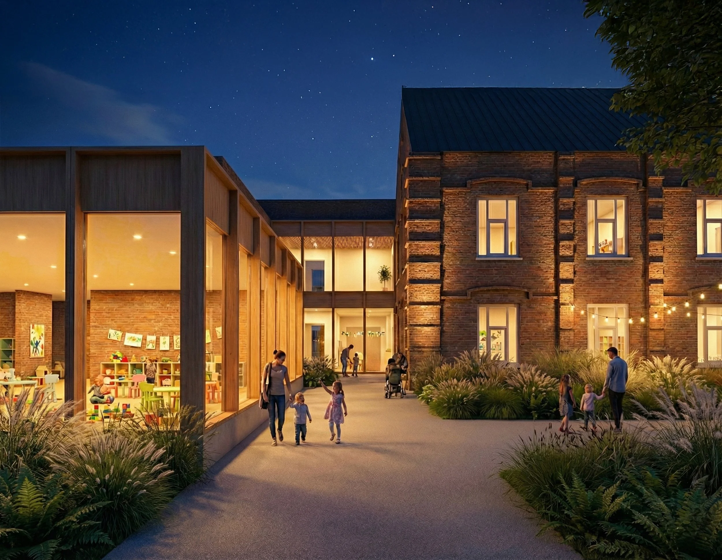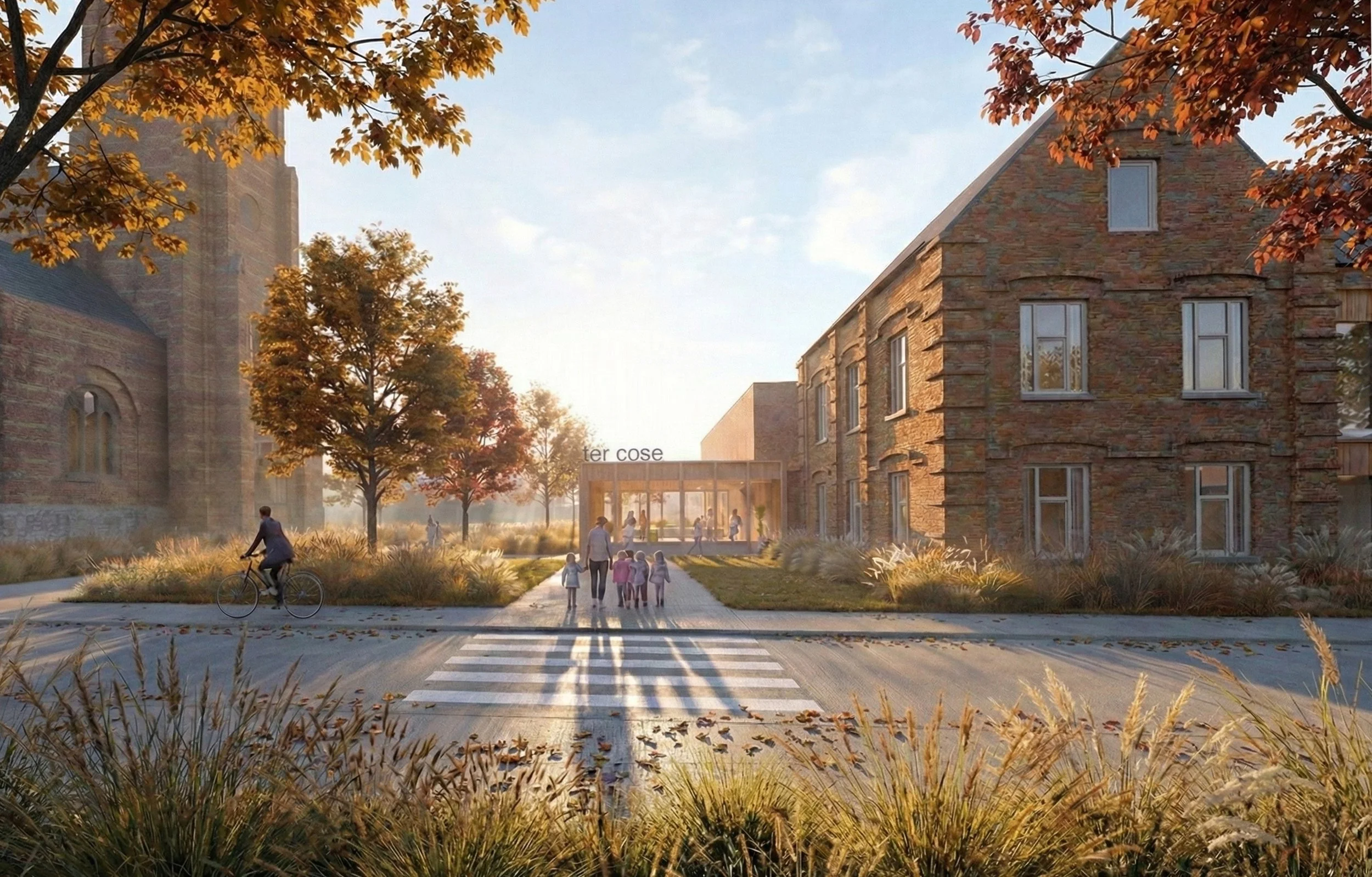 Buurthuis ‘Ter Cose’ wordt HERDACHT als een open en verbindende plek in het centrum van Kozen, waar opvang, ontmoeting en vrije tijd samenkomen in één helder geheel. Het project bouwt verder op de aanwezige kwaliteiten van de site en versterkt deze zonder ze te overschrijven.